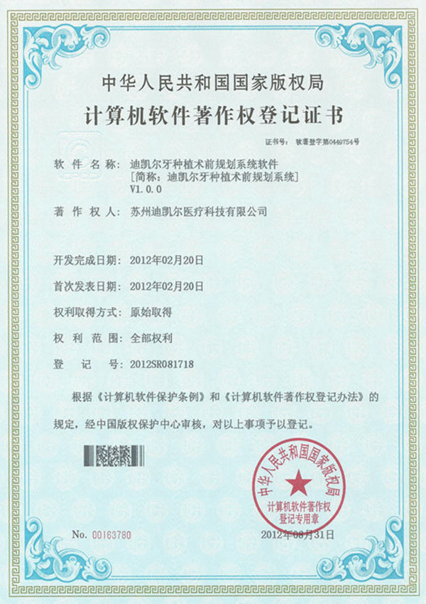 計算機軟件著作權(quán)證書